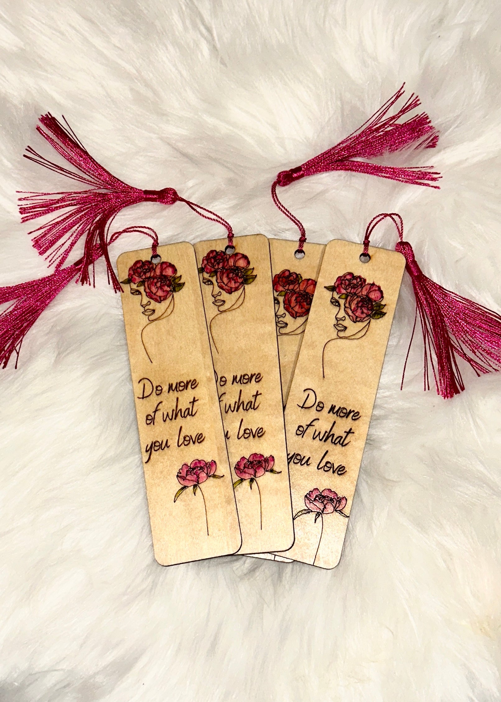 Our handcrafted wooden laser-cut bookmark is a fusion of inspiration and artistry. each bookmark is inscribed with a thoughtfully chosen inspirational quote and and single line artwork that has been meticulously hand-painted alcohol ink on 3 mm Birchwood. This unique creation is adorned with a coordinated satin tassel, adding a touch of elegance to your reading experience.